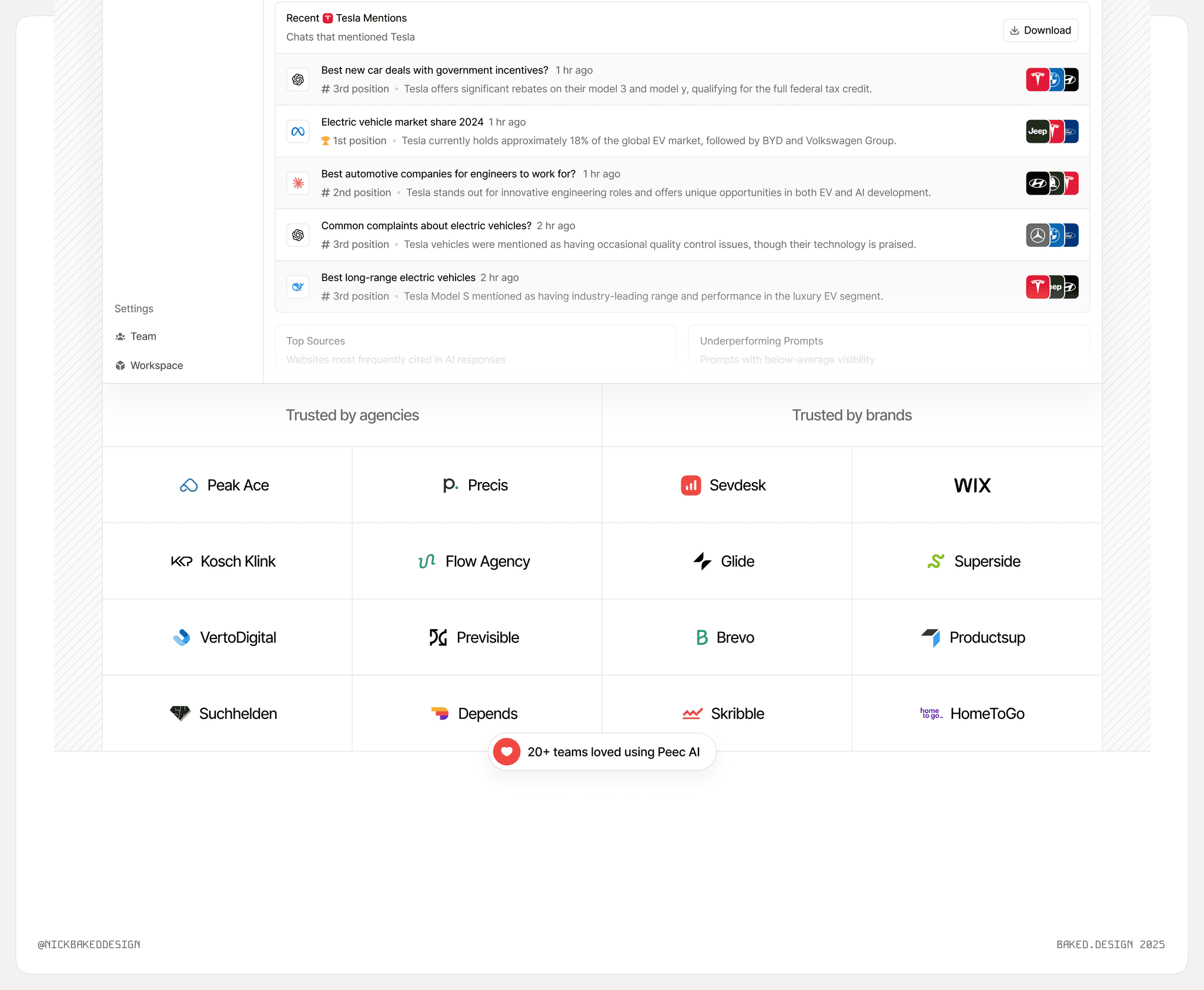 Peec.AI went from โฌ5k to โฌ110k ARR and raised โฌ7m across two rounds, all in 5 months of partnering up with Baked.Design in July 2025.